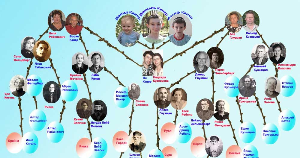Дедушка Борис и  бабушка Ася в 2005 году начали строить этот сайт для своих внуков. Дедушка много лет собирал информацию со стороны вашего отца, а бабушка Ася занималась техническим сопровождением и родственниками со стороны вашей матери.  Предки дедушки Бориса жили в разных местечках Белоруссии, и в родословной упоминается около тысячи  их имен. К сожалению, дедушка Борис покинул нас и эта часть сайта не поддерживается уже несколько лет.